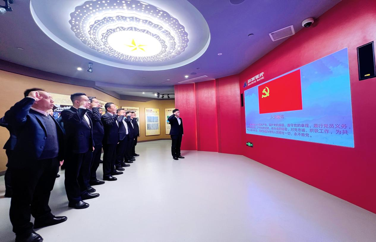 活动中,全体党员在党旗前重温入党誓词。铿锵誓言彰显了金融工作者对党的无限忠诚与践行“金融为民”的坚定决心。