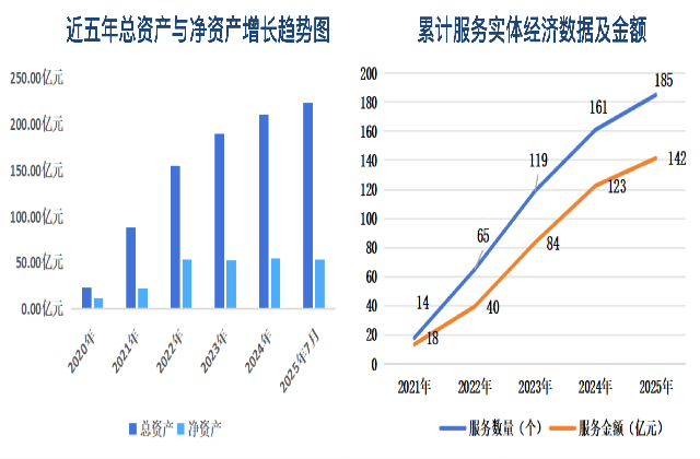 五年来,江西金控投资总资产由2020年的11.51亿元增长至222.61亿元,年均复合增长率达109.71%;净资产由4.08亿元增长至53.56亿元,年均复合增长率90.35%。累计服务实体经济和产业超140亿元,参与赣深高铁、南昌航空产业园、南昌万景装备制造产业园等10余个省内重点产业园区建设,累计引导省外资金入赣超60亿元。